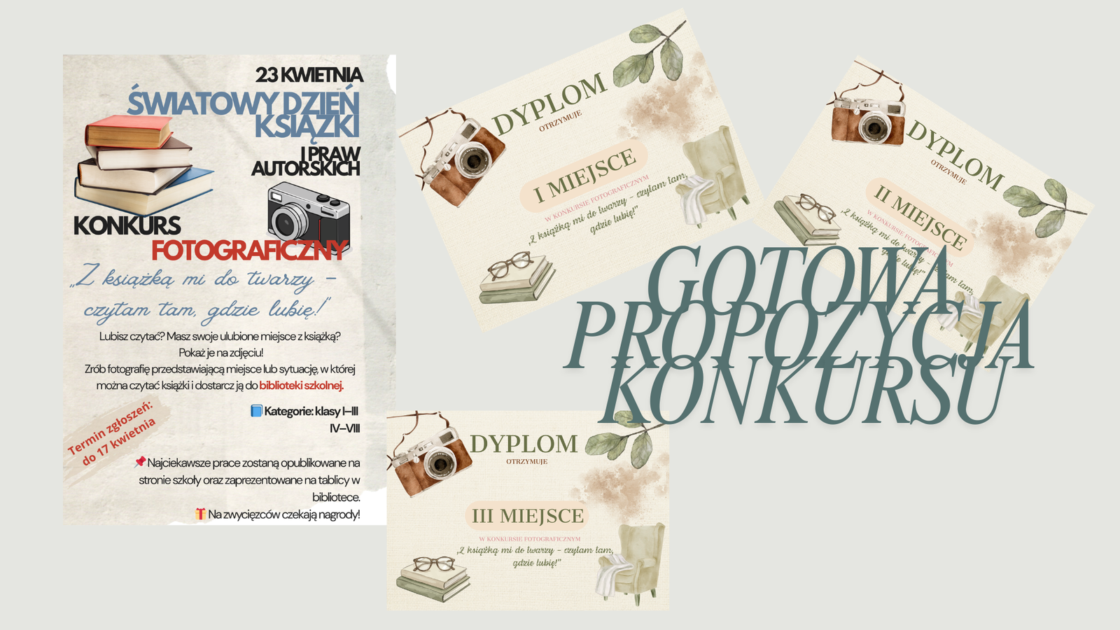 Propozycja konkursu fotograficznego z gotowym regulaminem, plakatem oraz dyplomami. Gotowy do realizacji. Format WORD do edycji (załączniki w formie pdf).